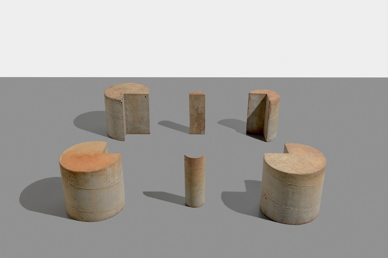 rusted cement cylinders, in 6 parts