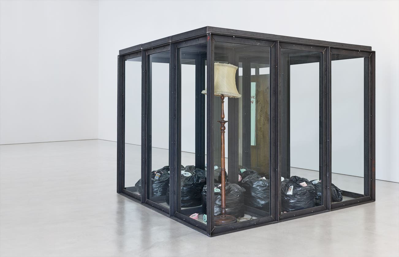 This is a brave and unabashedly confrontational work that continues down a path already laid by some of the most important artists of the twentieth century. The black, contorted sacks positioned within isolating formal structures evoke Francis Bacon’s tortured figures trapped within the tense dimensions of their own thoughts. The use of industrial materials and found objects – sacks, steel – recall the Arte Povera constructions of Jannis Kounellis. Here, beauty becomes manifest in unconventional ways. The raw power of the structures carries its message with a haunting yet quotidian grace, ultimately establishing a causal relationship between self-image and provocation.