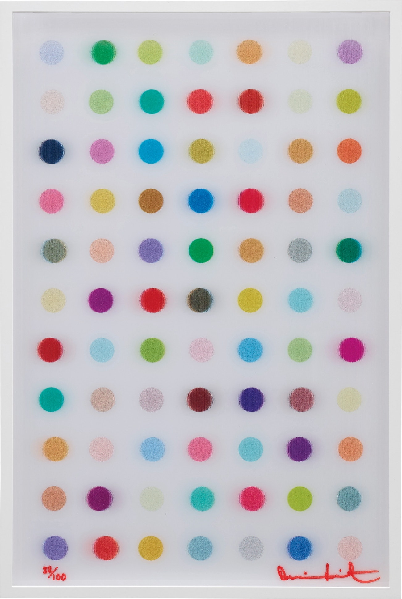 Hirst remains genre-defying and creates everything from sculpture, prints, works on paper and paintings to installation and objects. Another of his most celebrated series, the 'Pill Cabinets' present rows of intricate pills, cast individually in metal, plaster and resin, in sterilized glass and steel containers; Phillips New York showed the largest of these pieces ever exhibited in the United States, The Void, 2000, in May 2017.
