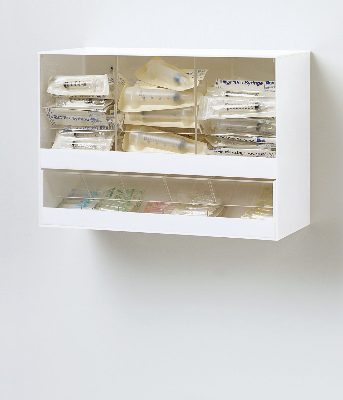 Hirst remains genre-defying and creates everything from sculpture, prints, works on paper and paintings to installation and objects. Another of his most celebrated series, the 'Pill Cabinets' present rows of intricate pills, cast individually in metal, plaster and resin, in sterilized glass and steel containers; Phillips New York showed the largest of these pieces ever exhibited in the United States, The Void, 2000, in May 2017.