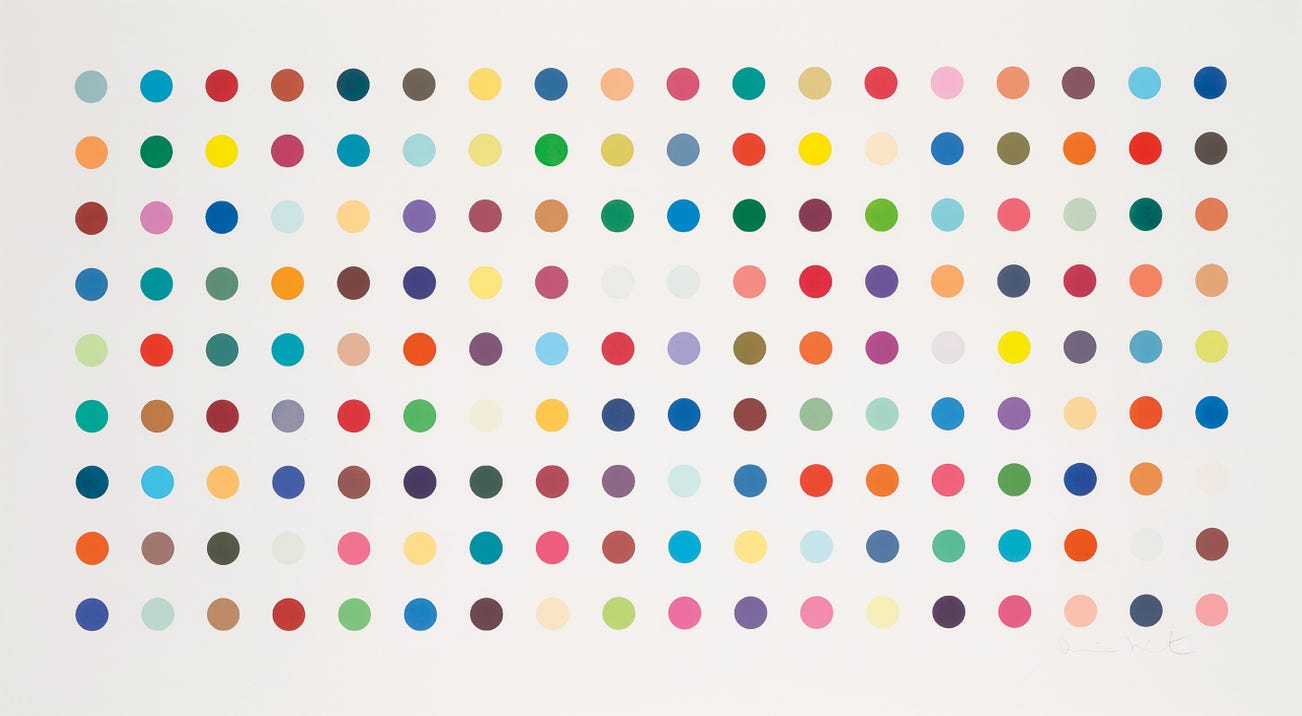 Regarded as Britain's most notorious living artist, Hirst has studded human skulls in diamonds and submerged sharks, sheep and other dead animals in custom vitrines of formaldehyde. In tandem with Cheyenne Westphal, former Chairman of Phillips, Hirst controversially staged an entire exhibition directly for auction with 2008's "Beautiful Inside My Head Forever," which collectively totalled £111 million ($198 million).
