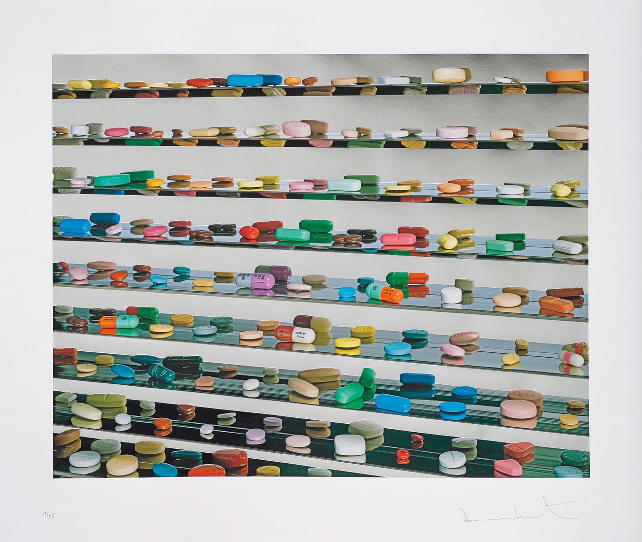 Hirst remains genre-defying and creates everything from sculpture, prints, works on paper and paintings to installation and objects. Another of his most celebrated series, the 'Pill Cabinets' present rows of intricate pills, cast individually in metal, plaster and resin, in sterilized glass and steel containers; Phillips New York showed the largest of these pieces ever exhibited in the United States, The Void, 2000, in May 2017.