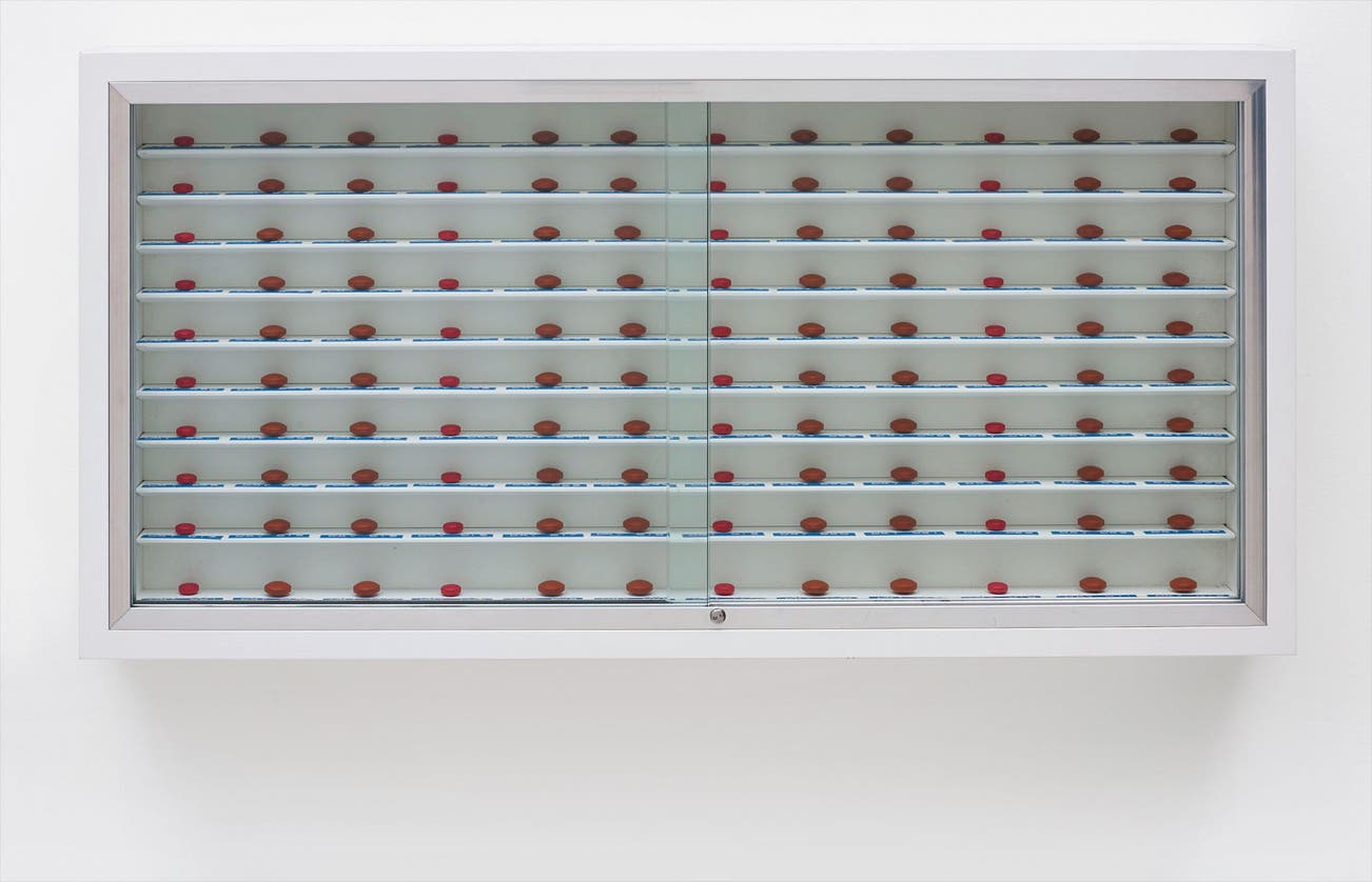 Hirst remains genre-defying and creates everything from sculpture, prints, works on paper and paintings to installation and objects. Another of his most celebrated series, the 'Pill Cabinets' present rows of intricate pills, cast individually in metal, plaster and resin, in sterilized glass and steel containers; Phillips New York showed the largest of these pieces ever exhibited in the United States, The Void, 2000, in May 2017.