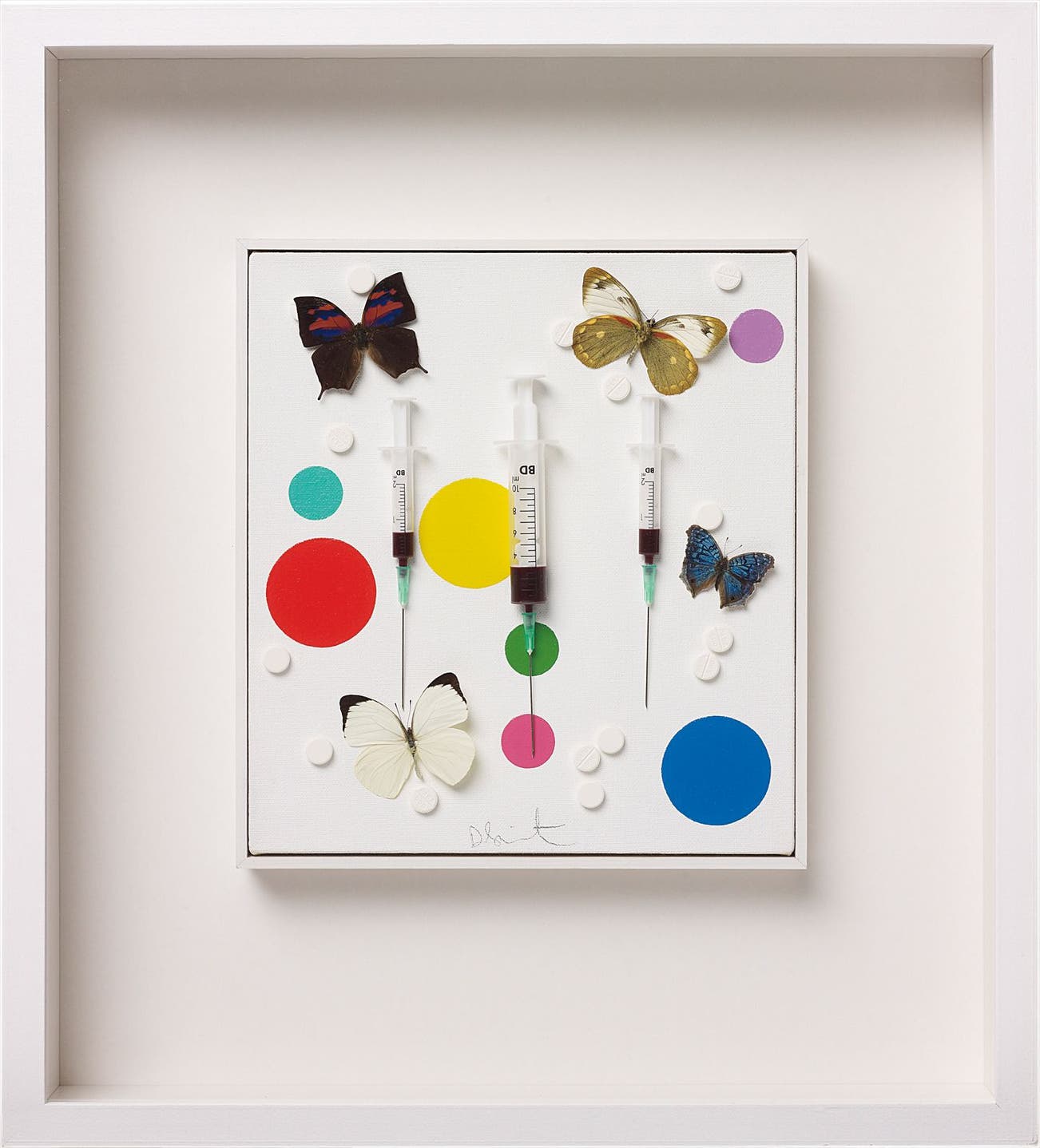 Hirst remains genre-defying and creates everything from sculpture, prints, works on paper and paintings to installation and objects. Another of his most celebrated series, the 'Pill Cabinets' present rows of intricate pills, cast individually in metal, plaster and resin, in sterilized glass and steel containers; Phillips New York showed the largest of these pieces ever exhibited in the United States, The Void, 2000, in May 2017.