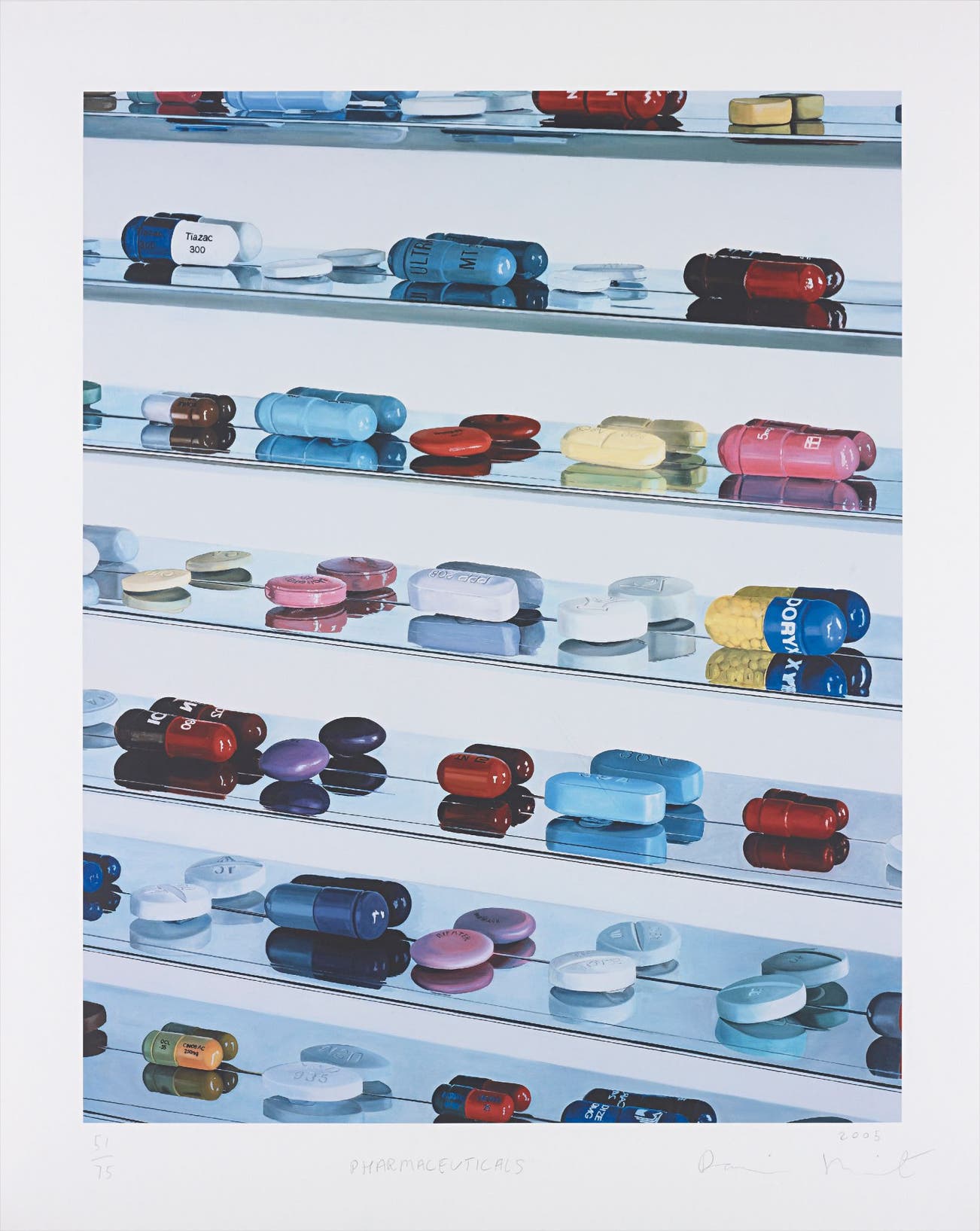 Hirst remains genre-defying and creates everything from sculpture, prints, works on paper and paintings to installation and objects. Another of his most celebrated series, the 'Pill Cabinets' present rows of intricate pills, cast individually in metal, plaster and resin, in sterilized glass and steel containers; Phillips New York showed the largest of these pieces ever exhibited in the United States, The Void, 2000, in May 2017.