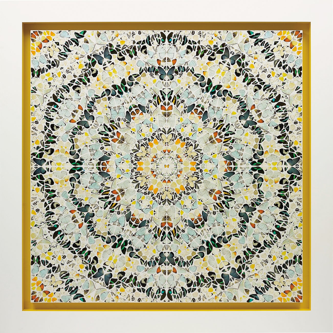 In 2001, Hirst began to focus his attention on the butterfly’s wing. Arranging these already intricate forms into yet more elaborate patterns, he began his iconic 'Kaleidoscope' paintings. It is to this body of work that Veneration belongs. Drawing on the animal’s natural symmetry and confounding beauty, the artist arranges a series of concentric rings that spread like rippling water from the centre of the canvas. Celebratory in effect, the piece is aptly titled; enlivened by an explosive energy, the work joyously bursts forth.