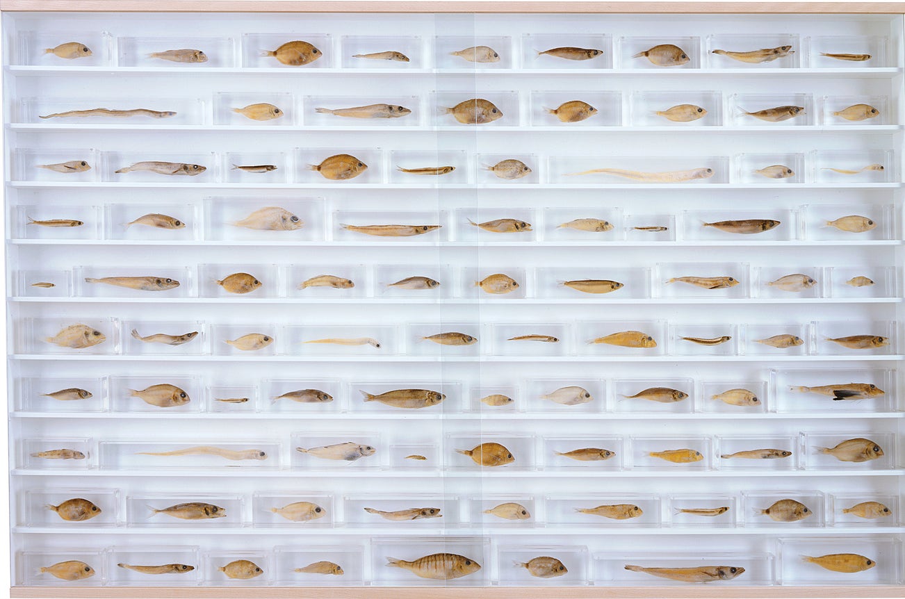 Hirst remains genre-defying and creates everything from sculpture, prints, works on paper and paintings to installation and objects. Another of his most celebrated series, the 'Pill Cabinets' present rows of intricate pills, cast individually in metal, plaster and resin, in sterilized glass and steel containers; Phillips New York showed the largest of these pieces ever exhibited in the United States, The Void, 2000, in May 2017.