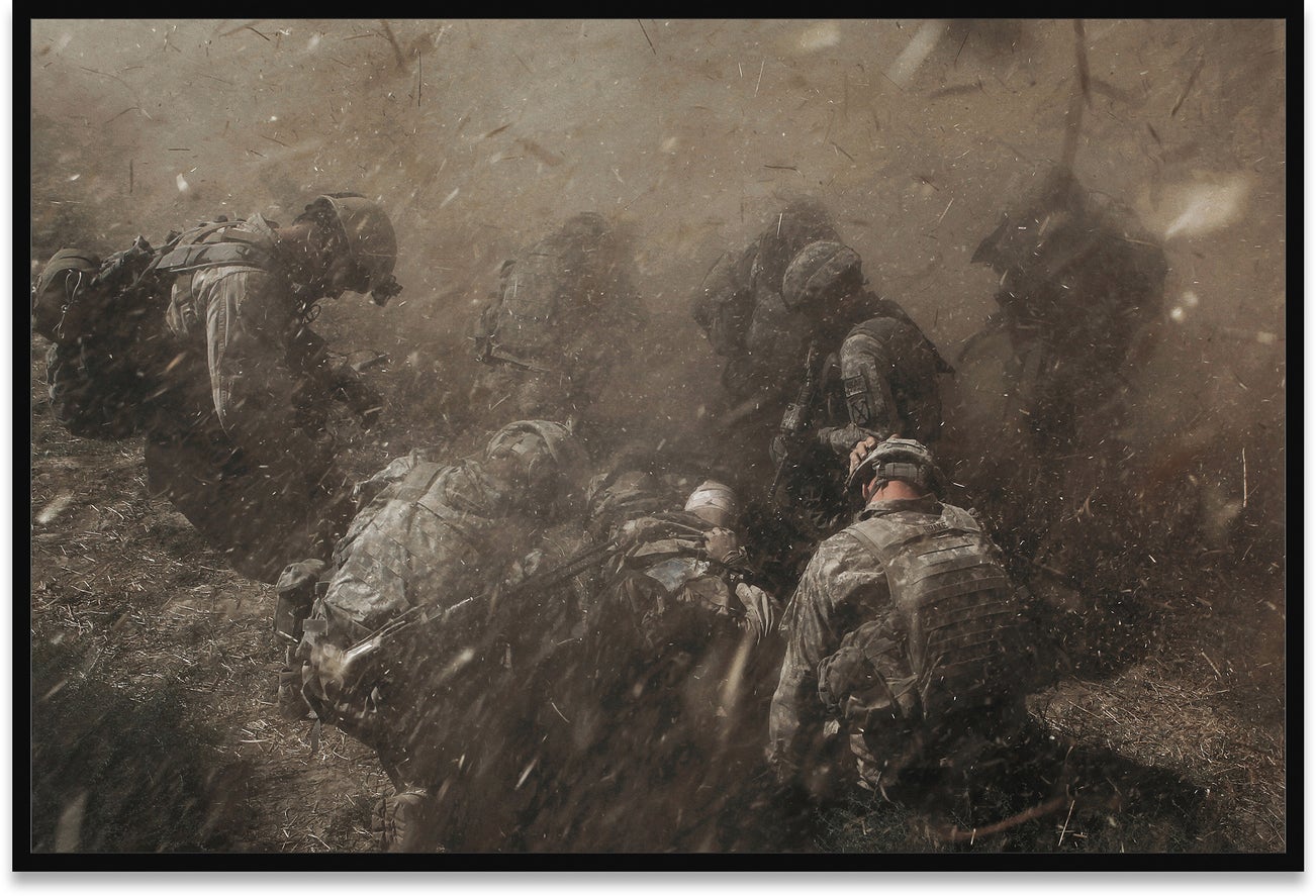 This photograph depicts a wounded Naval officer being shielded by soldiers in Kunduz, Afghanistan in 2010 and was selected as the cover image of the New York Times on 14 April 2021.