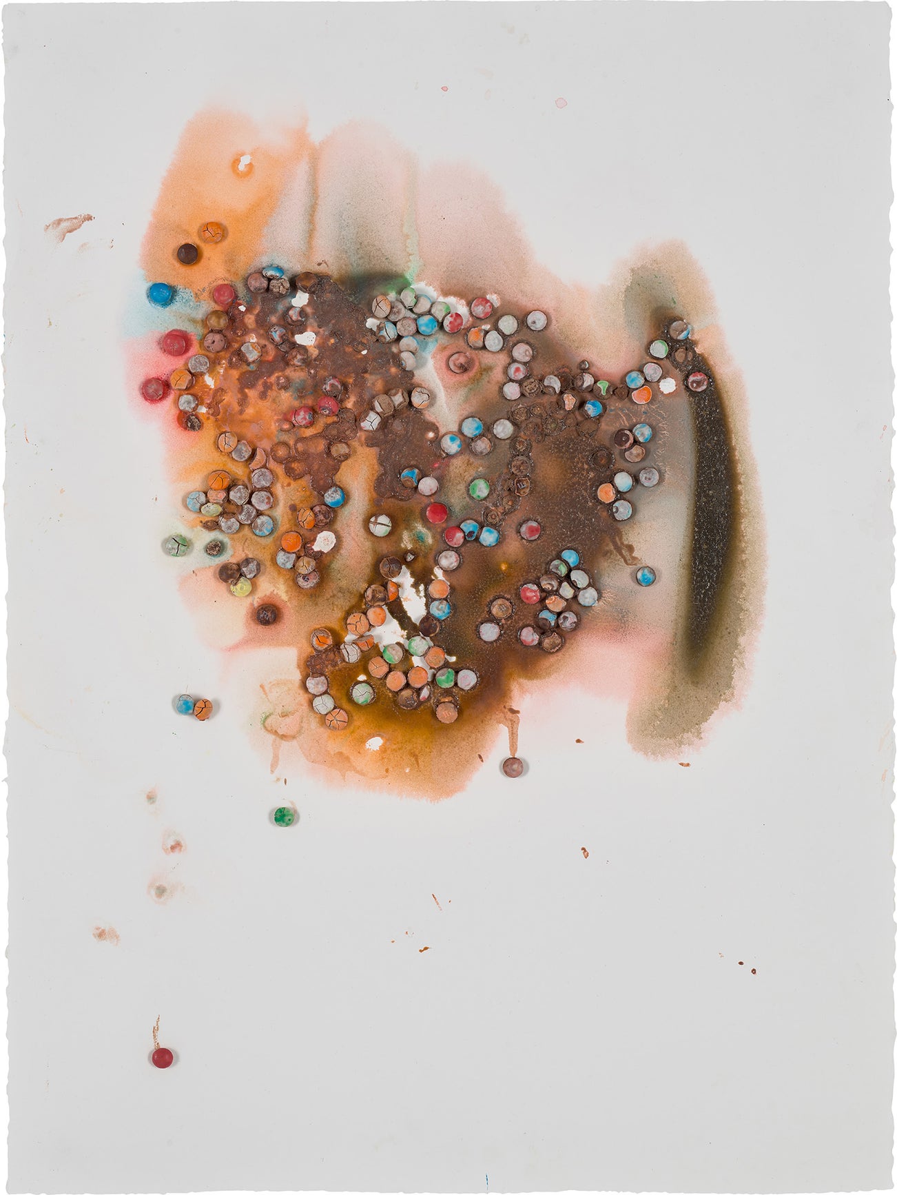 Colen subsequently stepped away from paint as material and started using found objects as mediums with which to paint. Among these, Colen has used chewing gum, street trash, confetti, feathers, flowers and dirt. This methodology allows Colen to abandon control and create in a more free-form, subconscious manner.