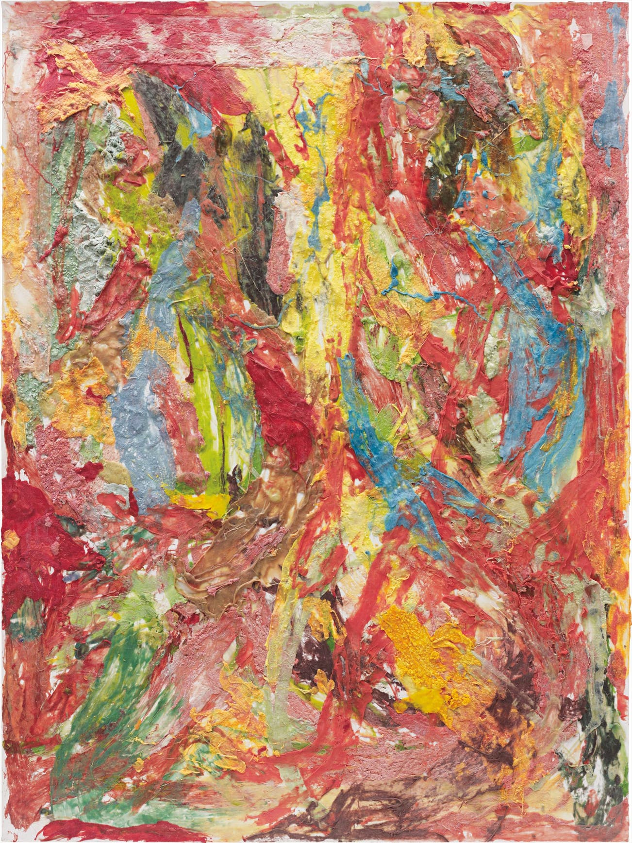 Composed of brightly coloured chewing gum, spread across a canvas It’s only natural, is a densely textured work and vibrant piece, which seems to seems to both radiate towards the viewer while also seductively tempting us to touch its surface. One of a series of chewing gum paintings, this work perfectly epitomizes the artist’s playful and provocative style. In using chewing gum as though it were paint, the artist not only cheekily challenges common notions of painting, presenting a new and decidedly modern direction for art practice, but also turns a ubiquitous object of the modern day into something surprising and beautiful, encouraging us to reconsider the possibilities of the undervalued and common place. Indeed much of Colen’s art centers on transforming objects in a startling and novel manner, often - as in the case of It’s Only natural - adapting media so that they seem to resemble other objects. During his career the artist has made oil paint seem like bird droppings, flowers resemble jets of ink and papier-mâché imitates stone boulders.
