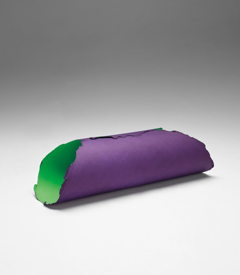 Double-sided mezzotint in purple and green (one on each side), on handmade paper, the full sheet rolled and fastened with a single stitch (as issued).