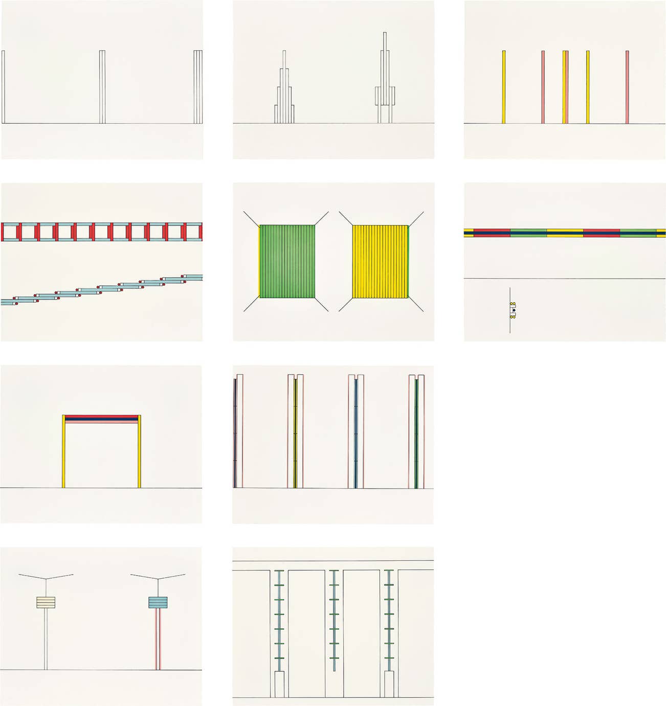 The complete set of ten etching and aquatints in colours, three with Chine-collé, on Rives rag paper, the full sheets, with colophon.