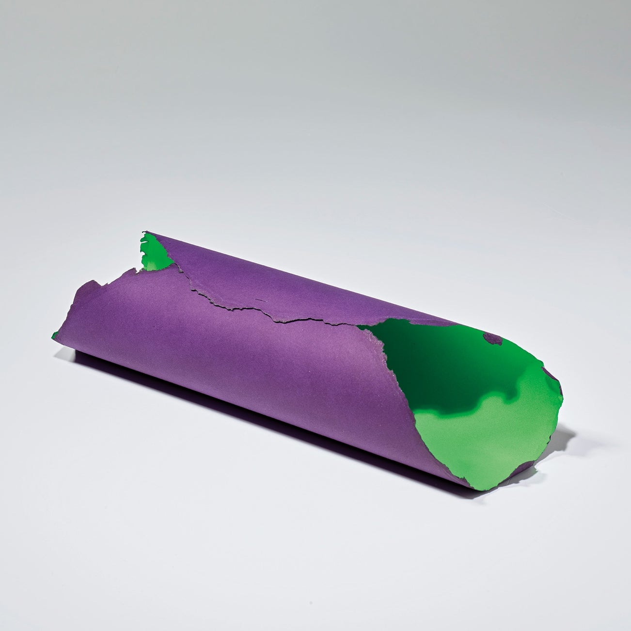 Double-sided mezzotint in purple and green (one on each side), on handmade paper, the full sheet rolled and fastened with a single stitch (as issued).