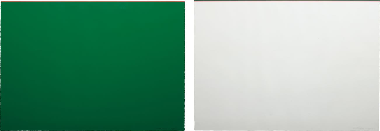 The complete set of two screenprints in colors, on Rives BFK paper, the full sheets,