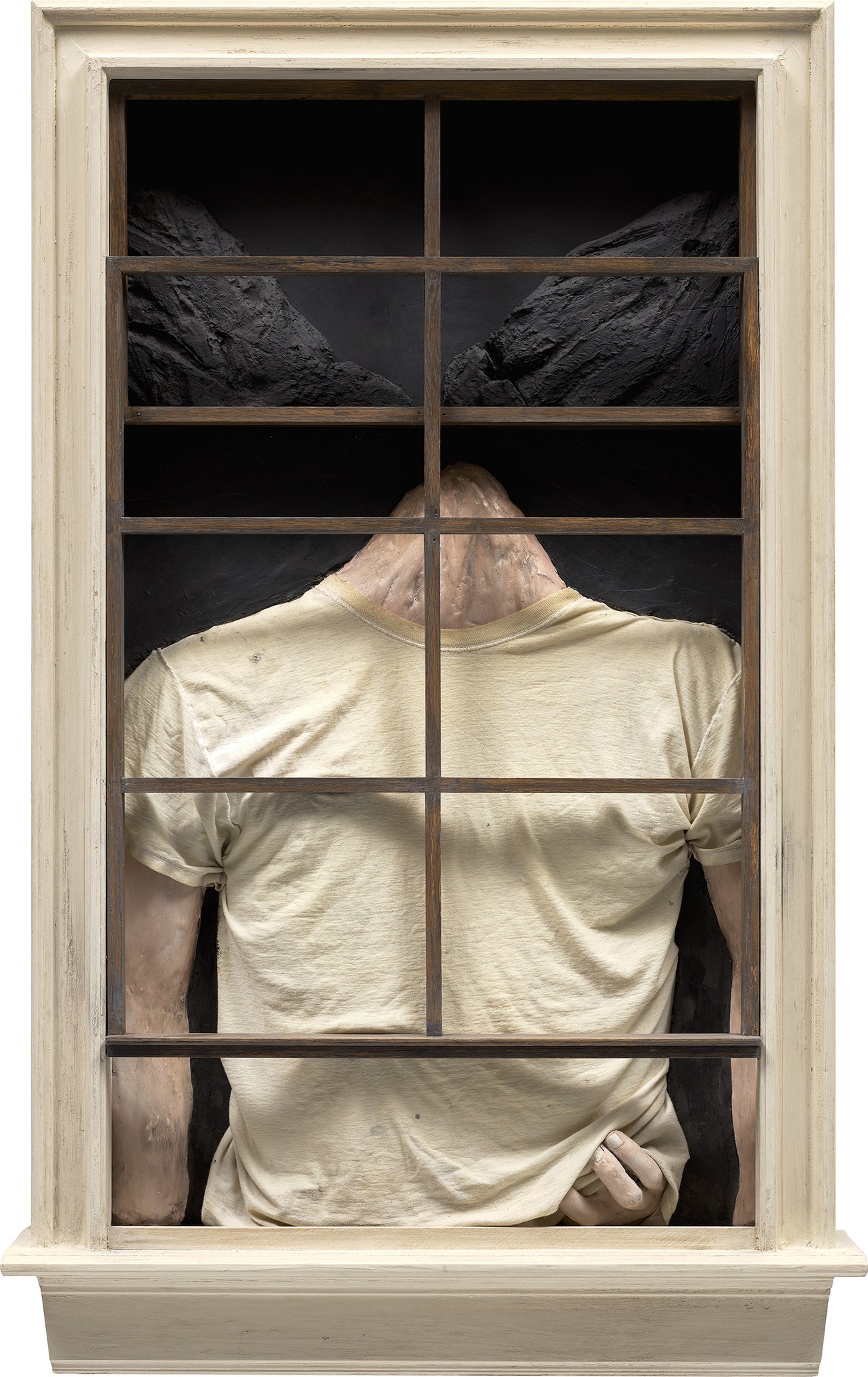 wood, plaster, pigmented joint compound, milk paint, wax and t-shirt