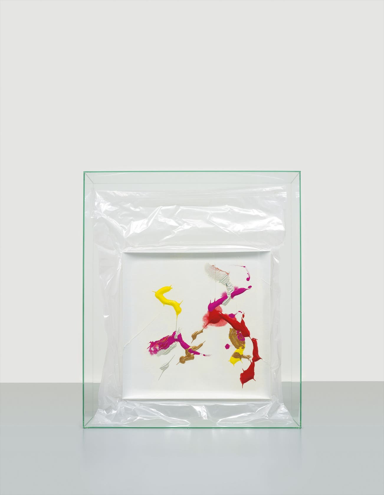 oil on canvas, plastic and glass
