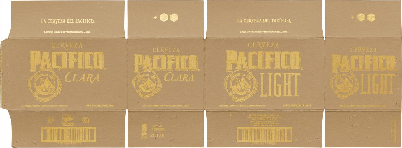 gold leaf on Mexican beer cardboard box