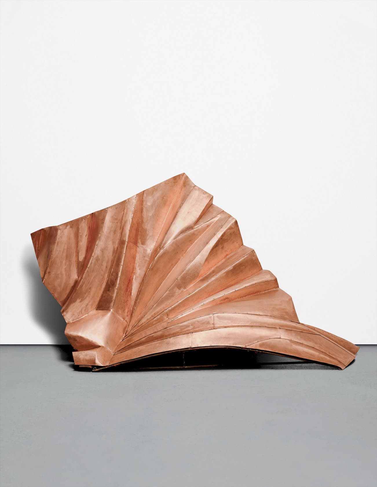 The present lot, a detail from the series We the People, is a copper fragment of the Statue of Liberty. Working from the original drawings, Vō commissioned a replica, built to scale, of Frederic August Bartholdi’s Statue of Liberty to be used as a cast over which thin copper sheets would be hammered – the same method that was used to construct the original. The present lot, element L19.1, is the fragment which comprises lady liberty’s right shoulder: here, stripped from its proud stance, its undulating and soft ripples, resemble the beating sails of a ship once bound to her shores. As each piece was completed (including the present lot), it was shipped to various museums and galleries across the globe making it unlikely that the figure will ever come together as a whole. This fragmented form can be read as a literal manifestation of the histories of cultural displacement as the individual pieces exist forever in a suspended dimension. The original Liberty was created as political propaganda for the French opposition, she represented a symbol of the dissemination of American democratic values to France, while in America Liberty became an immigrant symbol for those who immigrated and passed through Ellis Island in search of the American Dream. Remaining connected to these multiple histories, Vō’s reproduced, scattered and fragmented Lady Liberty emphasizing the abstract nature and mobility of culture symbolism.