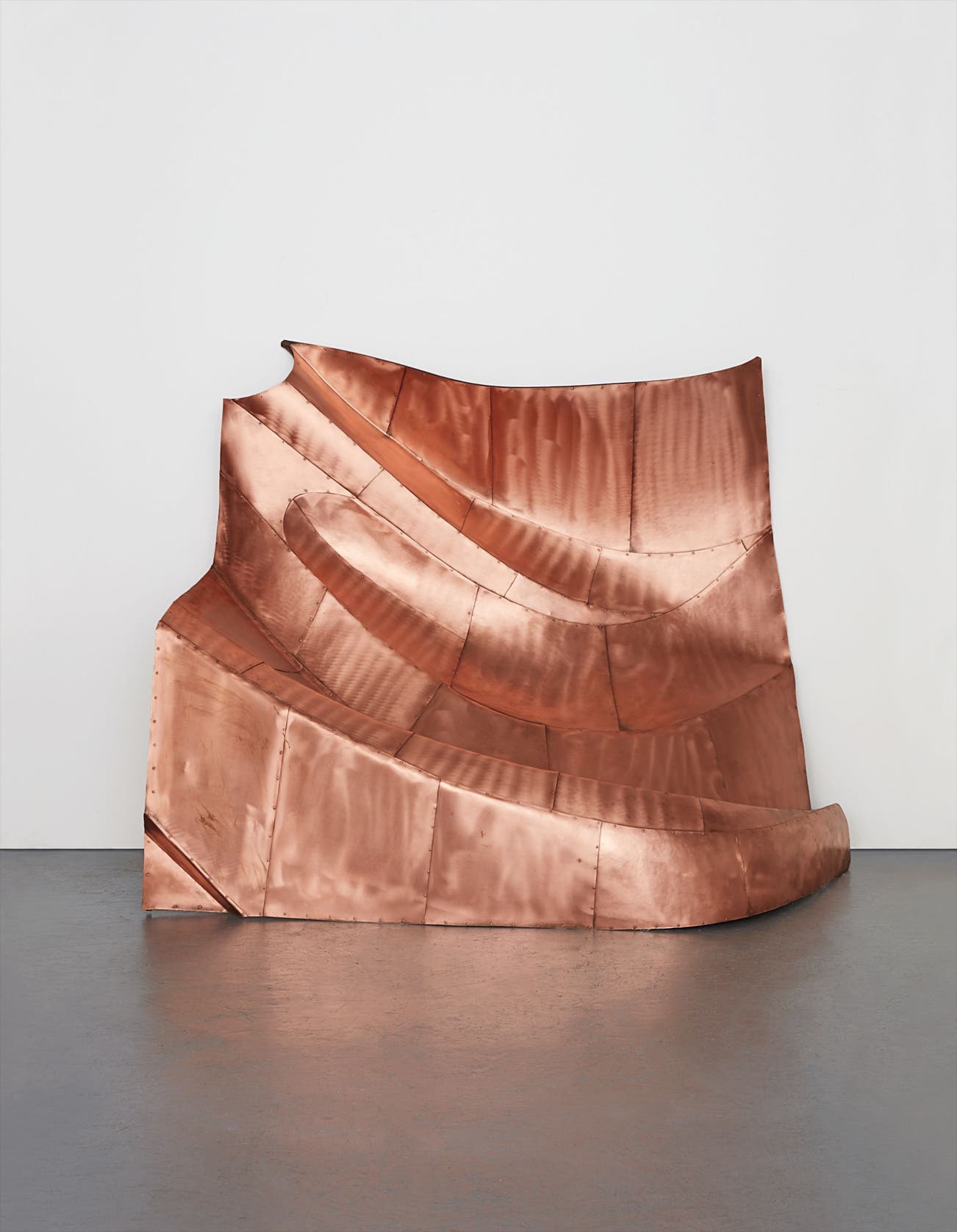 An elegant and undulating patchwork of copper, conceptual artist Danh Vo’s We the people (detail), 2011, is as subtle as it is monumental. Part of the artist’s most ambitious project to date, the present lot is one of around 400 unique detail objects cast from an exact replica of the leviathan Statue of Liberty, an icon that has watched over New York Harbor for over 120 years. As much a symbol of New York City as it is of Western democracy, the dismembered goddess has been transformed into an impossible puzzle of gleaming abstractions. Danh Vo’s We the people project is a characteristic example of the artist’s sophisticated and nuanced interpretation of the Duchampian ready-made. A transplant from Vietnam to Denmark, Vo’s own history manifests, as it does for many, as a series of individual vignettes, discrete pieces of a puzzle, unified by the physical body present therein. Understanding this fragmented history and exploring it has been a constant motif throughout Vo’s oeuvre. Indeed, even in the production of We the people – the original sculpture was fabricated in France and erected in New York whereas Vo’s was fabricated in Shanghai, dissected, and installed the world over in private and public collections alike – Vo has established a continuity through disconnect. The physical, material beauty of We the people (detail) belies its tortured conceptual existence, and yet, this beauty is similarly integral to the nature of the work itself. The undulating folds of the original Statue’s robes both harken back to a time of Grecian and Roman democratic idealism and also seem to reference the welcoming nature of a mother’s nightgown. Monumental, personal, fluid and static, Vo’s We the people (detail) is an enigmatic and stunning work by one of the most intellectually rigorous artists working today.