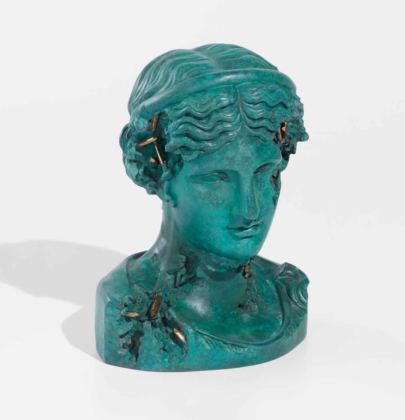 Cast bronze multiple with hand-finished Tiffany Green patina, contained in the original wooden crate.
