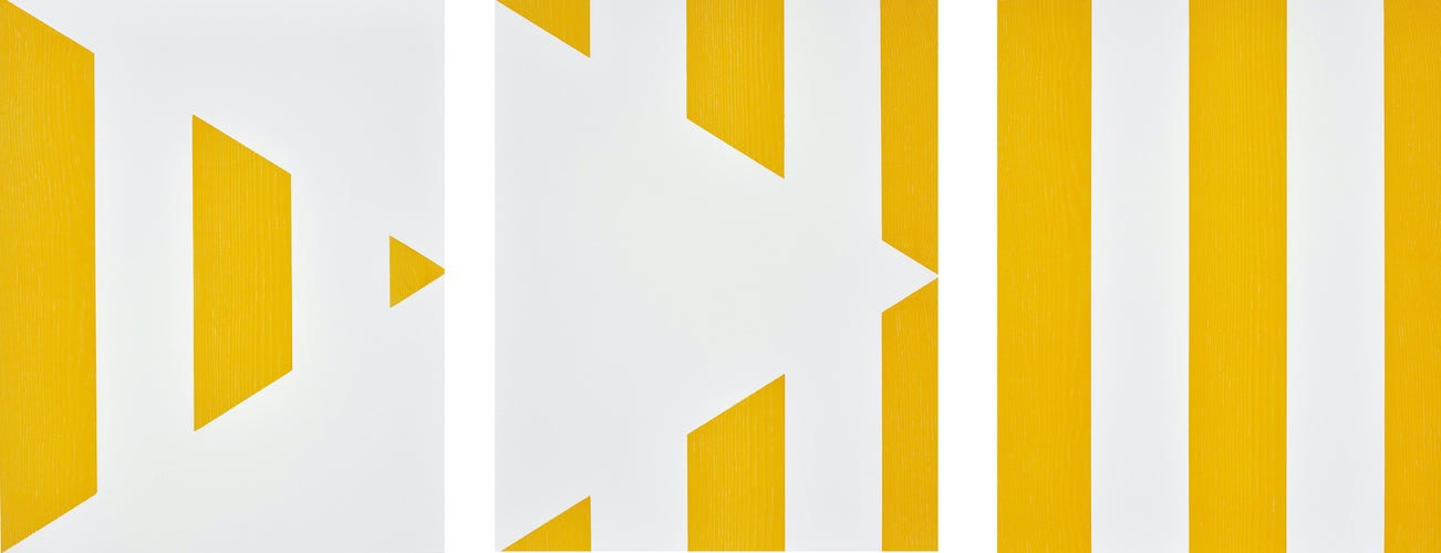 The complete set of three woodcuts in yellow, on Somerset Satin paper, the full sheets.