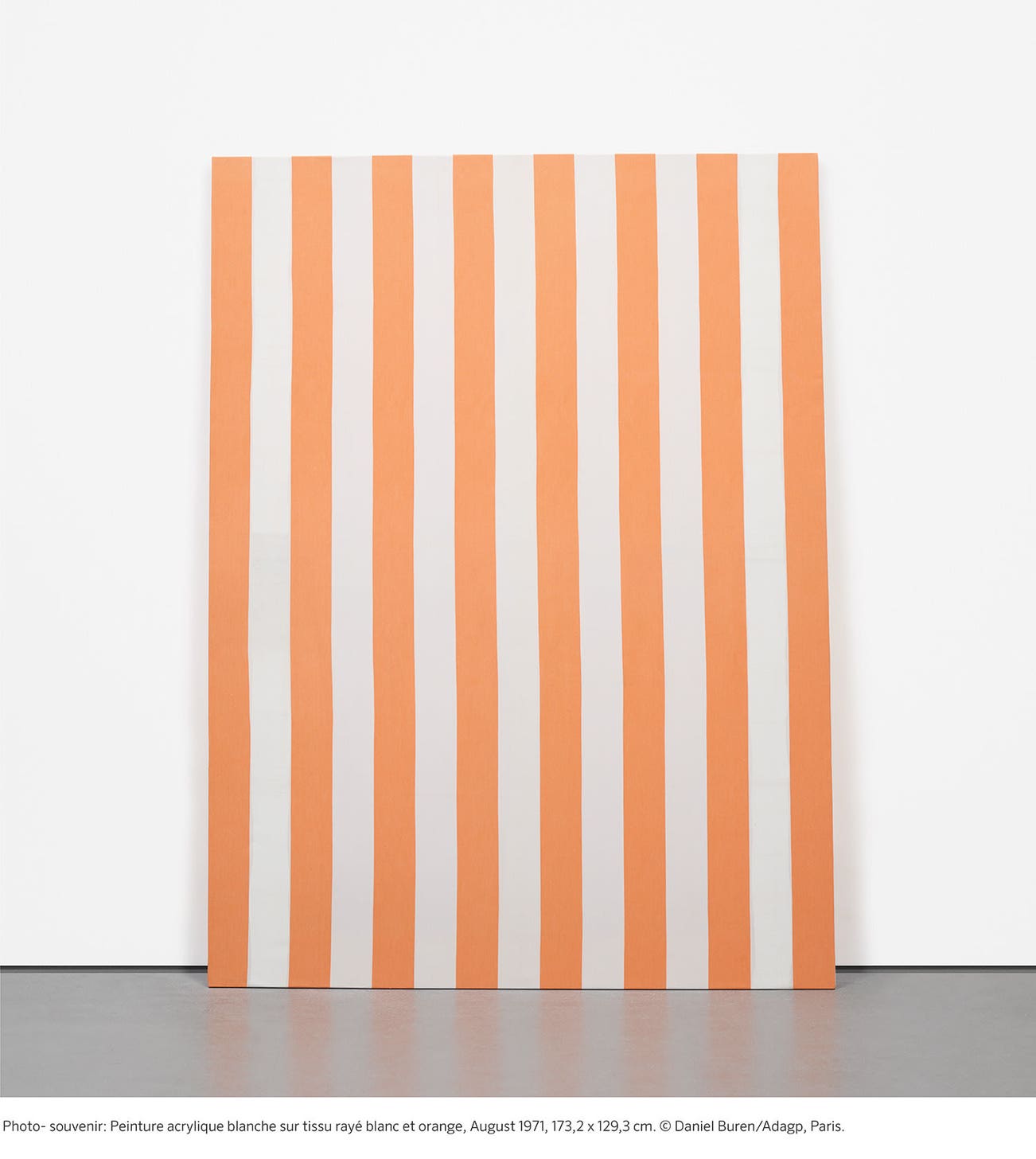 white acrylic paint on cotton, woven in alternating white and orange vertical stripes