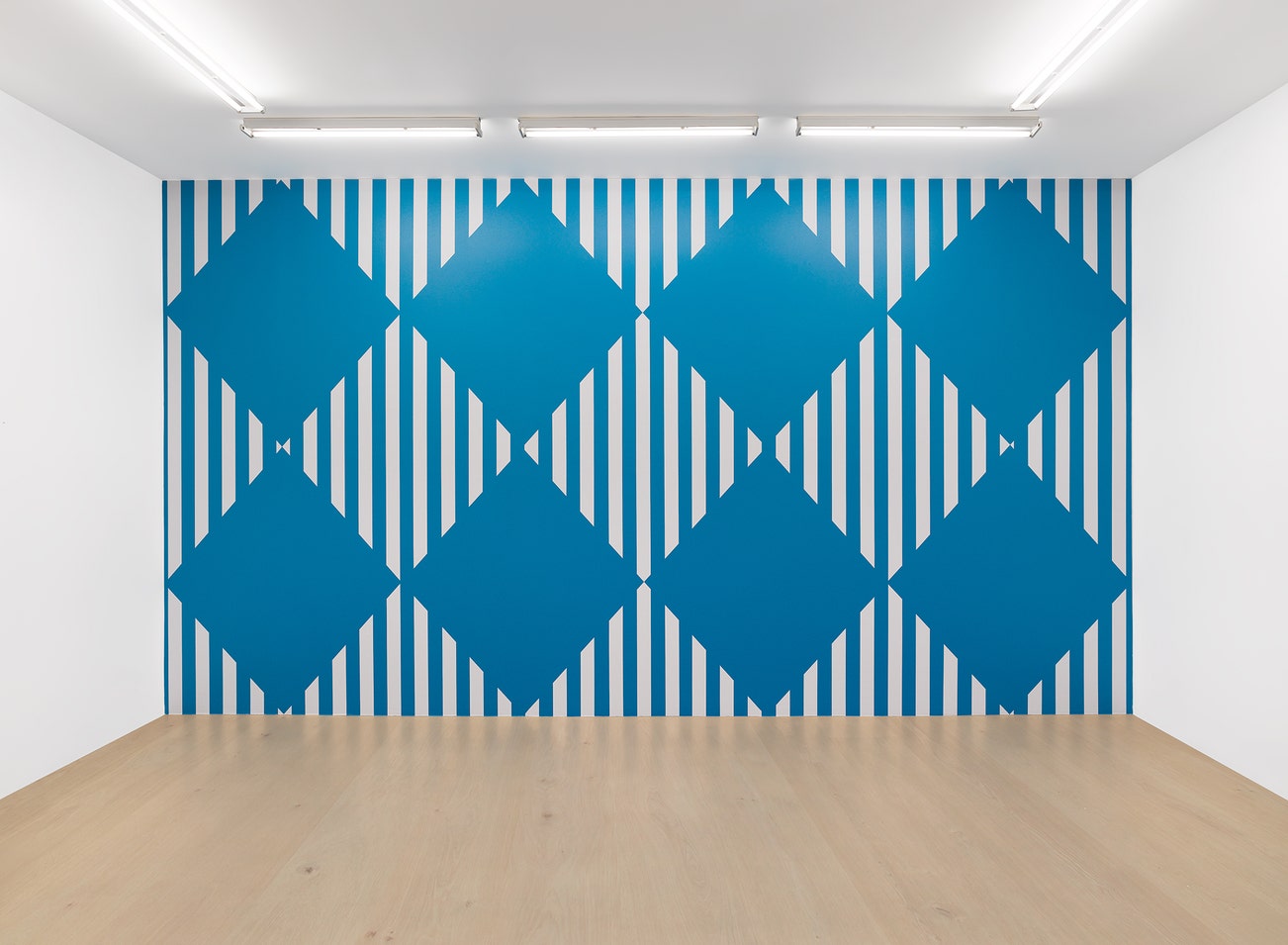 white self-adhesive vinyl on blue acrylic paint, wallpainting
