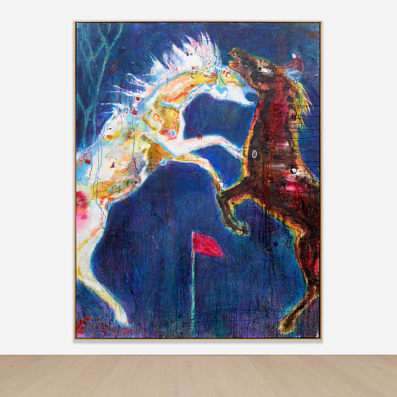 signed 'DANIEL RICHTER' centre left; signed and titled 'White Horse - Pink Flag Daniel Richter' on the reverse