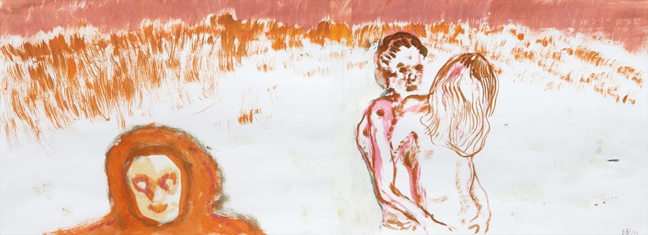 pencil, oil, tape on paper