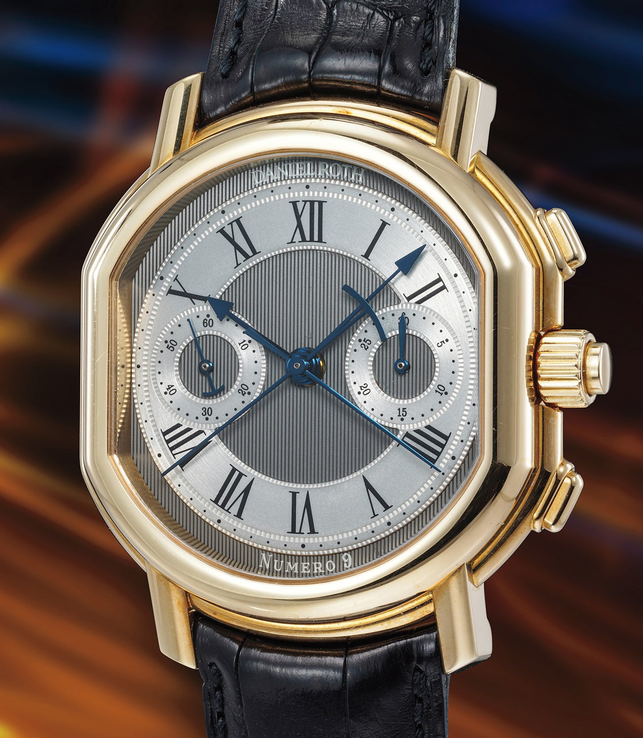 We are delighted to offer one of Roth's most elusive watches as to the best of our research the present split seconds chronograph is the first ever to appear in an international auction market in the past two decades.
