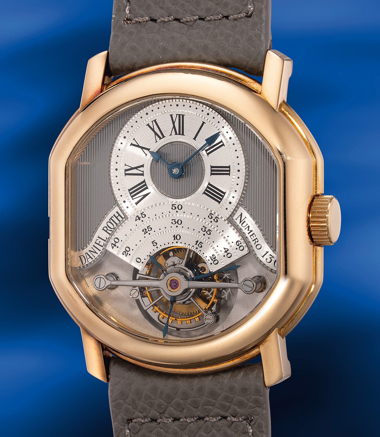 Founding his own brand, Roth immediately established a highly personal design language: the distinctive ellipsocurvex case, guilloché dials with horizontal motifs, and elegantly pointed hands. His first major creation, the Double‑Sided Tourbillon ref. C187, debuted in 1988 and was commercialized the following year. It remains one of his most celebrated works.