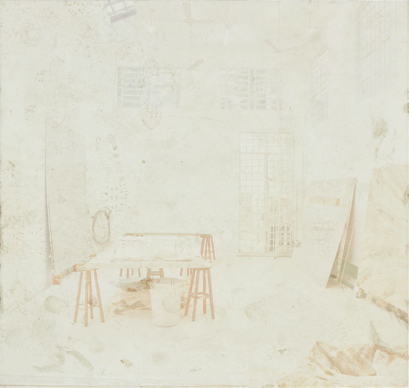ink jet print with artist's interventions on aluminum