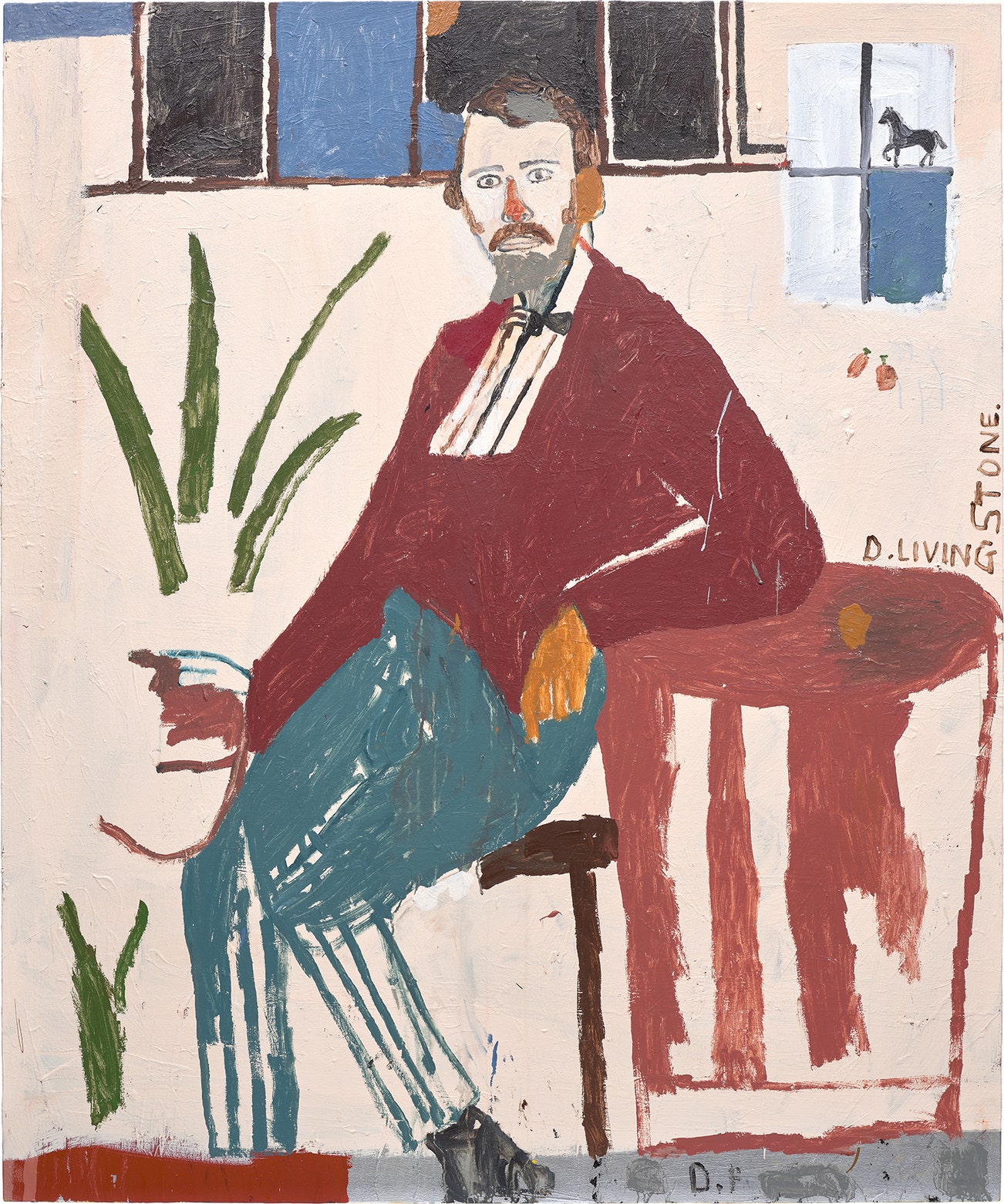 signed with the artists intials 'D.F' lower right; partially titled 'D. LIVINGSTONE' right edge