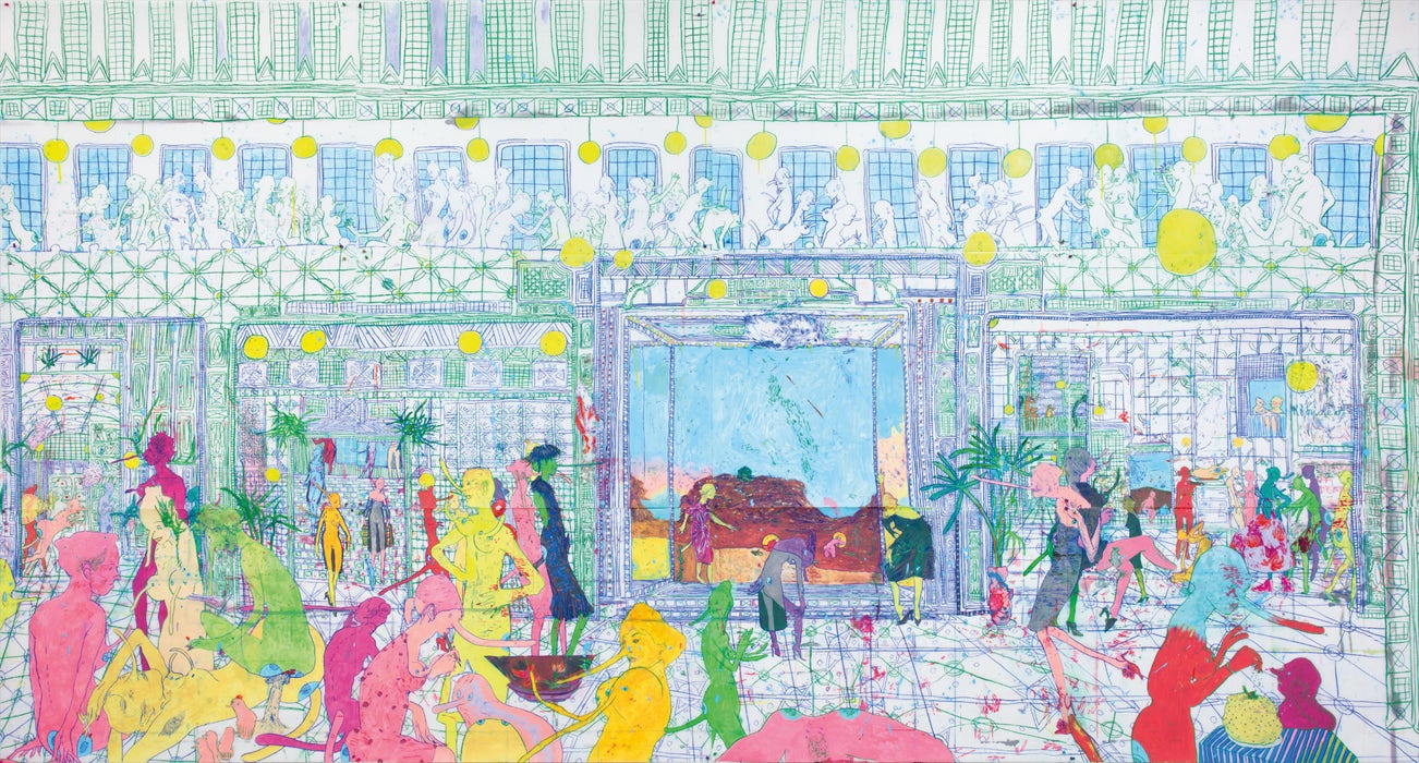 acrylic and crayon on mylar, in 12 parts