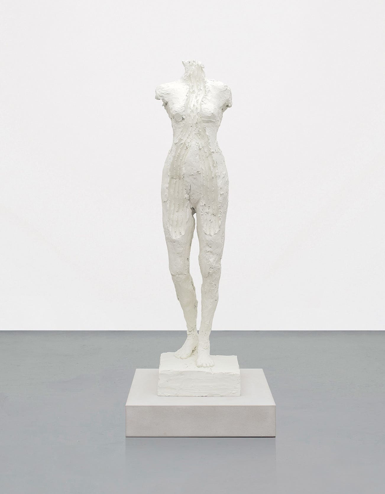Canadian artist David Altmejd currently lives and works in New York. He completed a BA in Fine Art at UQAM in Montreal before undertaking an MFA at Columbia University in New York. For Altmejd, the process of making is paramount – he is interested in how the act of constructing an object and defying traditional material conventions generates meaning. Altmejd’s new bronze figures can be seen as evolutions of his ongoing series known as Bodybuilders. Originally modelled in plaster, the figures are scarred by the fissures torn through the plaster by the artist’s fingers and lean more towards the feminine, as evidenced by anatomical detail or attributes such as high-heeled shoes.