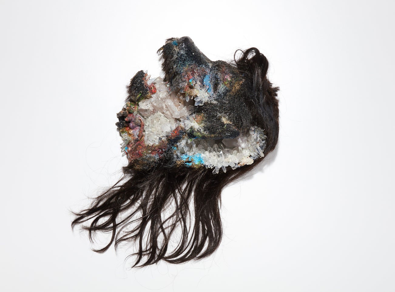 plaster, synthetic hair, epoxy putty, paint, glitter and quartz