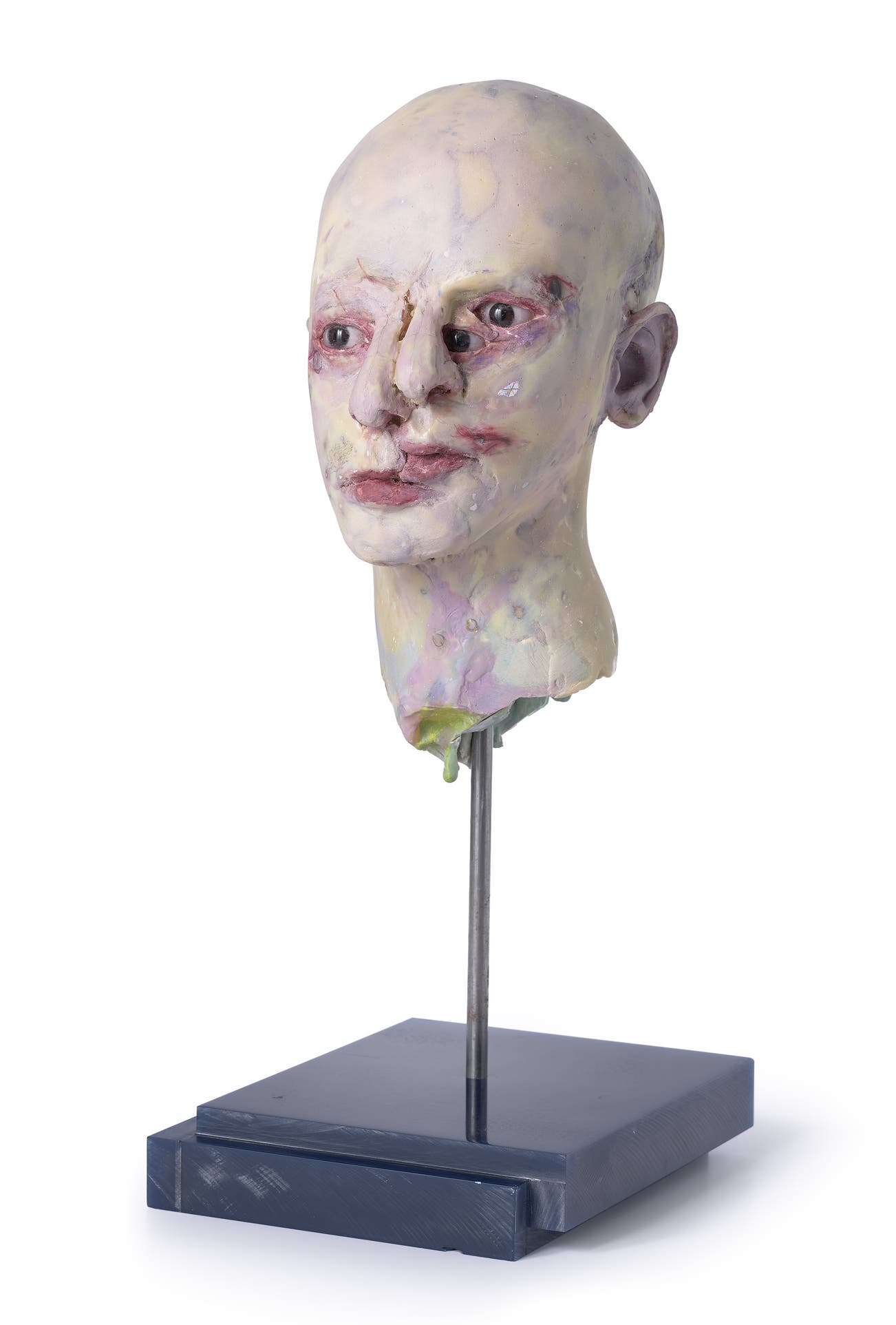 polyurethane foam, epoxy clay, epoxy gel, epoxy resin, quartz, steel, glass eyes, glass paint, acrylic gel and pencil