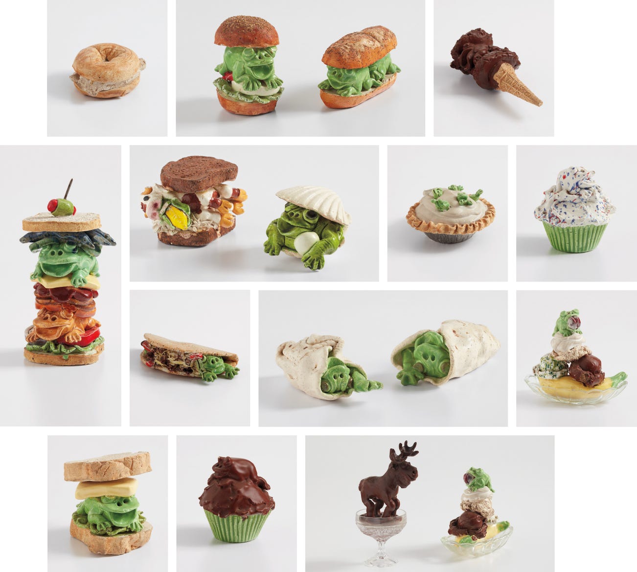 While Arneson was Funk’s leader, David Gilhooly, his former studio assistant, became its star student. Gilhooly used ceramics as a means of political and social satire. He conceived of the character “Frog Fred,” a protagonist used repeatedly throughout his work in various scenarios within a fantasy “Frog World.” Often the frogs and their animal companions recreate historical events or mimic historic or contemporary figures. In many cases, the frogs are depicted as classic American diner food. Gilhooly’s focus shifted to food in the 1970s while he was on a regimented diet and despite having gallery representation, Gilhooly would often sell these works at roadside stands as a commentary on consumer culture. The ceramic sculptures in the present lot are representative of this period of his work, which helped cement Gilhooly’s iconic role within the Funk movement and American ceramic history.