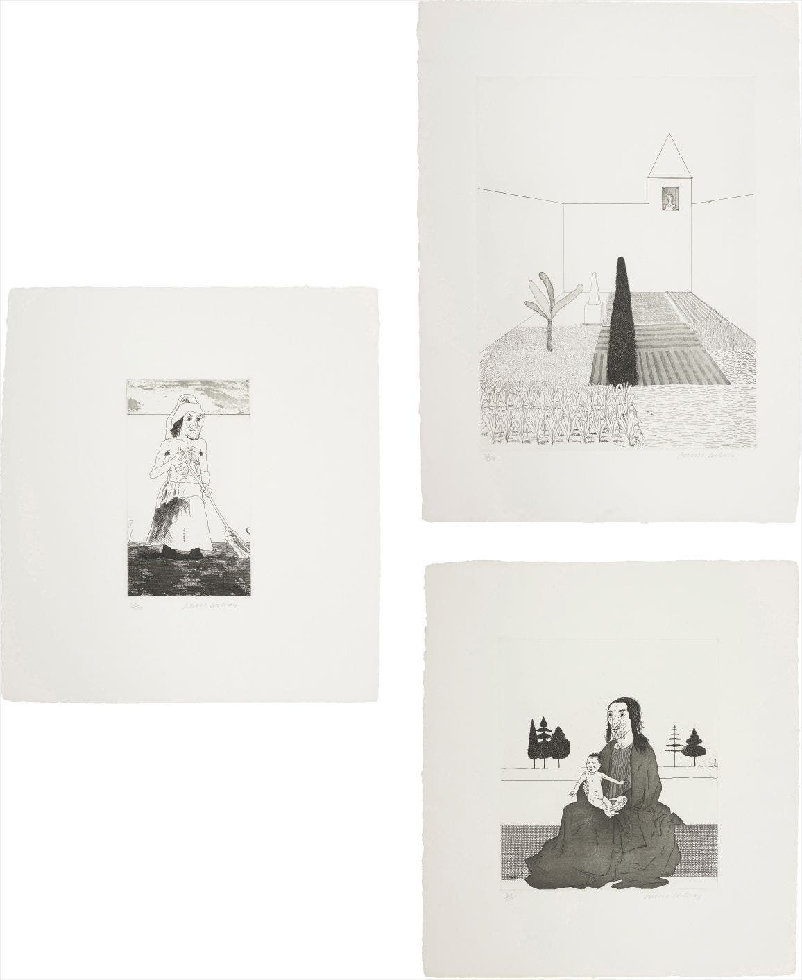Three etching and aquatints, on Hodgkinson hand-made wove paper watermarked 'DH / PP', with full margins.