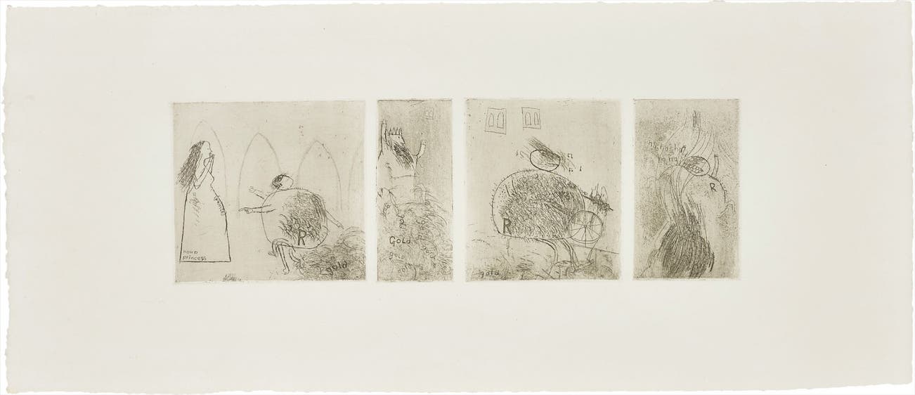 Four etchings, printed on one sheet of hand-made Crisbrook paper, with full margins.