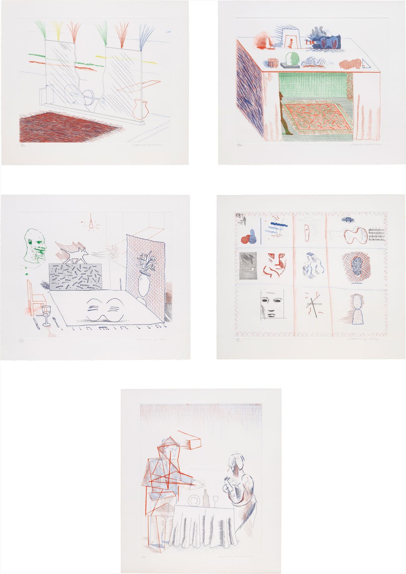 All signed and numbered 44/200, 151/200, 44/200, 30/200 and 30/200 in pencil (there were also 35 artist's proofs), published by Petersburg Press, New York, all unframed.