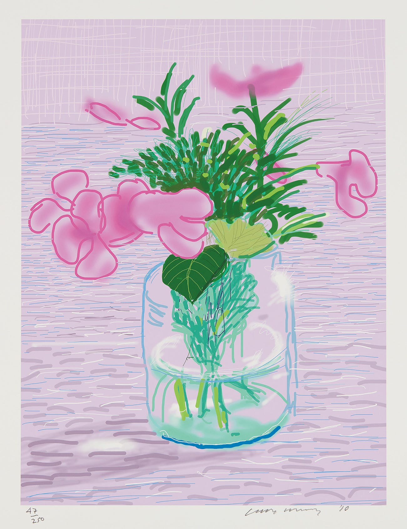 Hockney has exhibited at the Museum of Modern Art in New York, the Royal Academy of Arts in London, and the Van Gogh Museum in Amsterdam, among many other institutions. On the secondary market, his work has sold for more than $90 million.