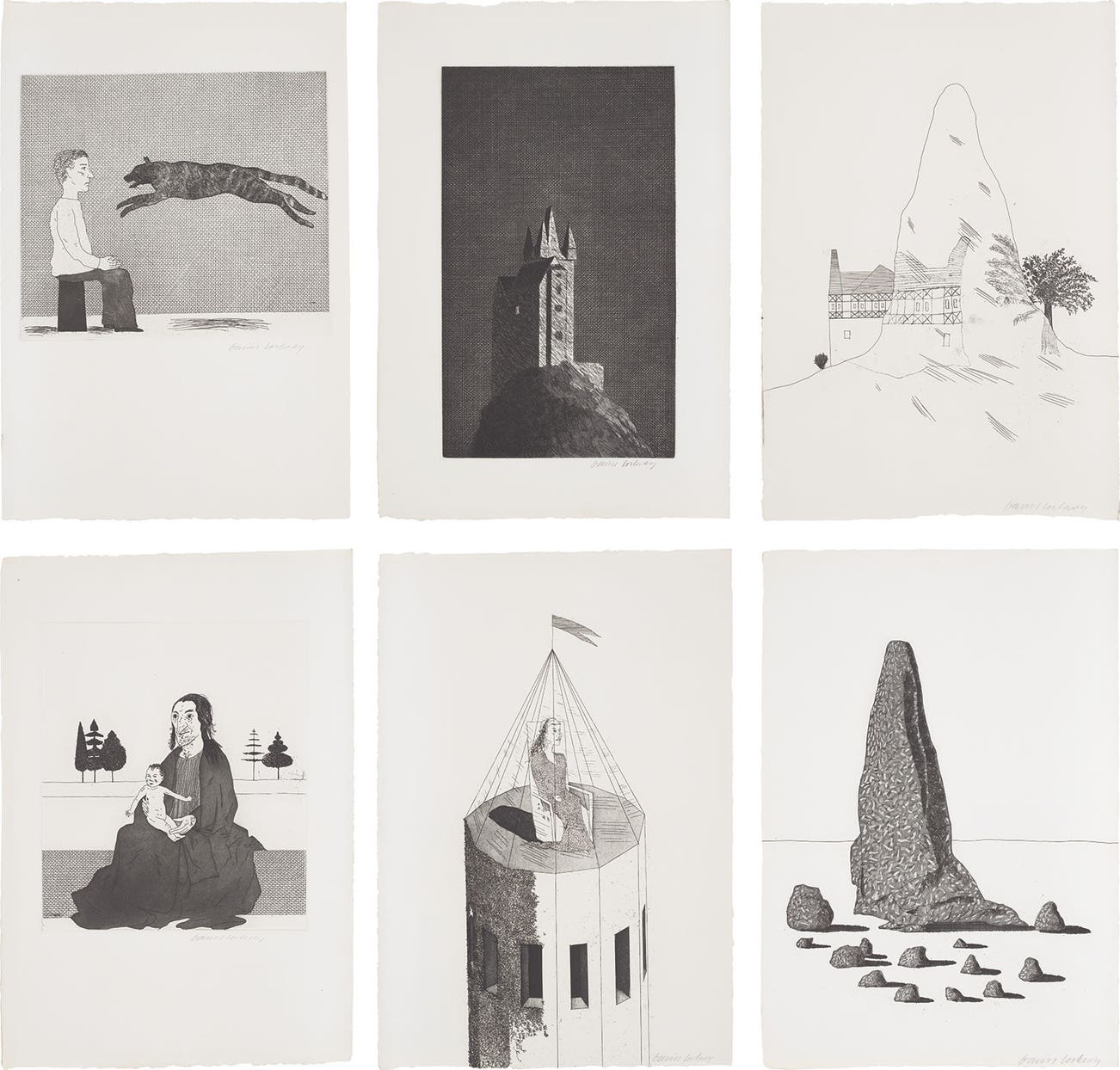 The book signed and numbered 'Ed. D. 1/100' in pencil on the justification (one of four editions annotated 'A-D', there were also 15 artist's proofs), the six loose etchings all signed in pencil on the front, and titled and numbered in black ink on the reverse, published by Petersburg Press, London in association with Kasmin Gallery, New York, 1970, the six loose prints unframed.