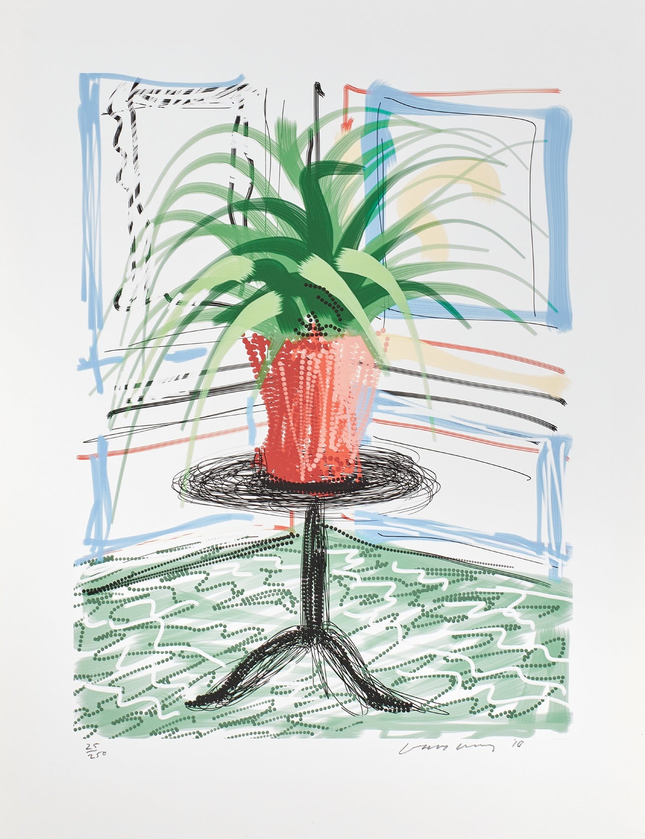 Hockney has exhibited at the Museum of Modern Art in New York, the Royal Academy of Arts in London, and the Van Gogh Museum in Amsterdam, among many other institutions. On the secondary market, his work has sold for more than $90 million.
