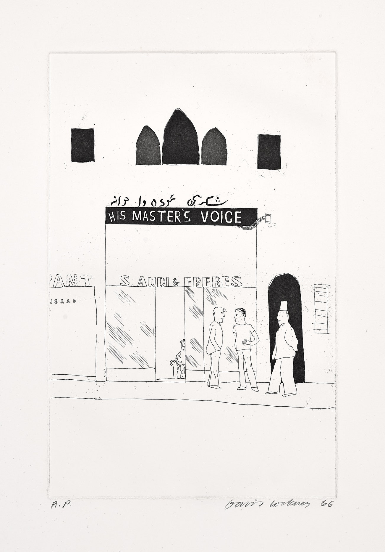 The Shop Window of a Tobacco Store, plate 7 from Illustrations for 14 Poems by C.P. Cavafy (E.A. 464, S.A.C. 53, M.C.A.T. 53)
