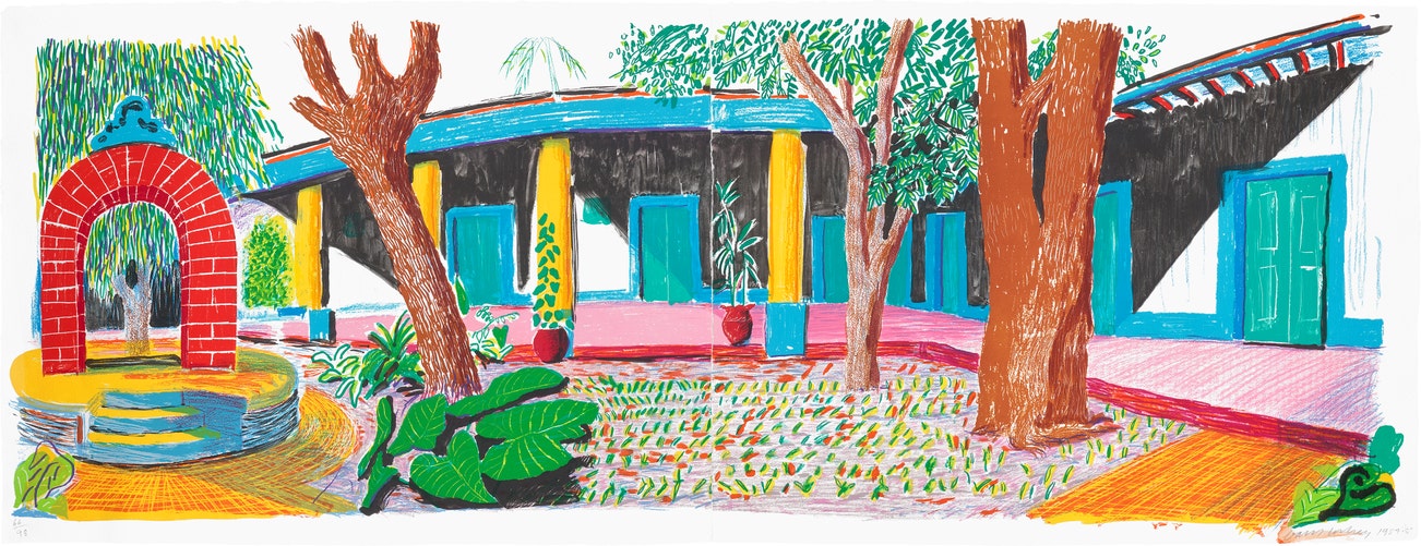 Hockney has exhibited at the Museum of Modern Art in New York, the Royal Academy of Arts in London, and the Van Gogh Museum in Amsterdam, among many other institutions. On the secondary market, his work has sold for more than $90 million.