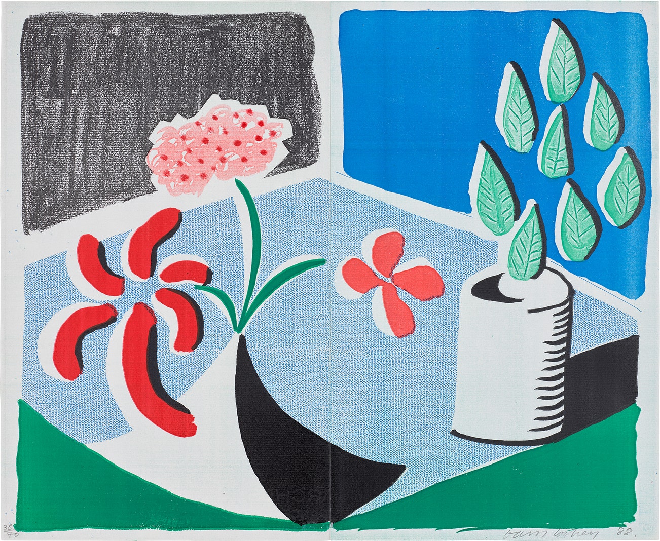BritishDavid Hockney (b. 1937) is one of the most well-known and celebrated artists of the 20th and 21st centuries. He works across many mediums, including painting, collage, and more recently digitally, by creating print series on iPads. His works show semi-abstract representations of domestic life, human relationships, floral, fauna, and thechanging of seasons.