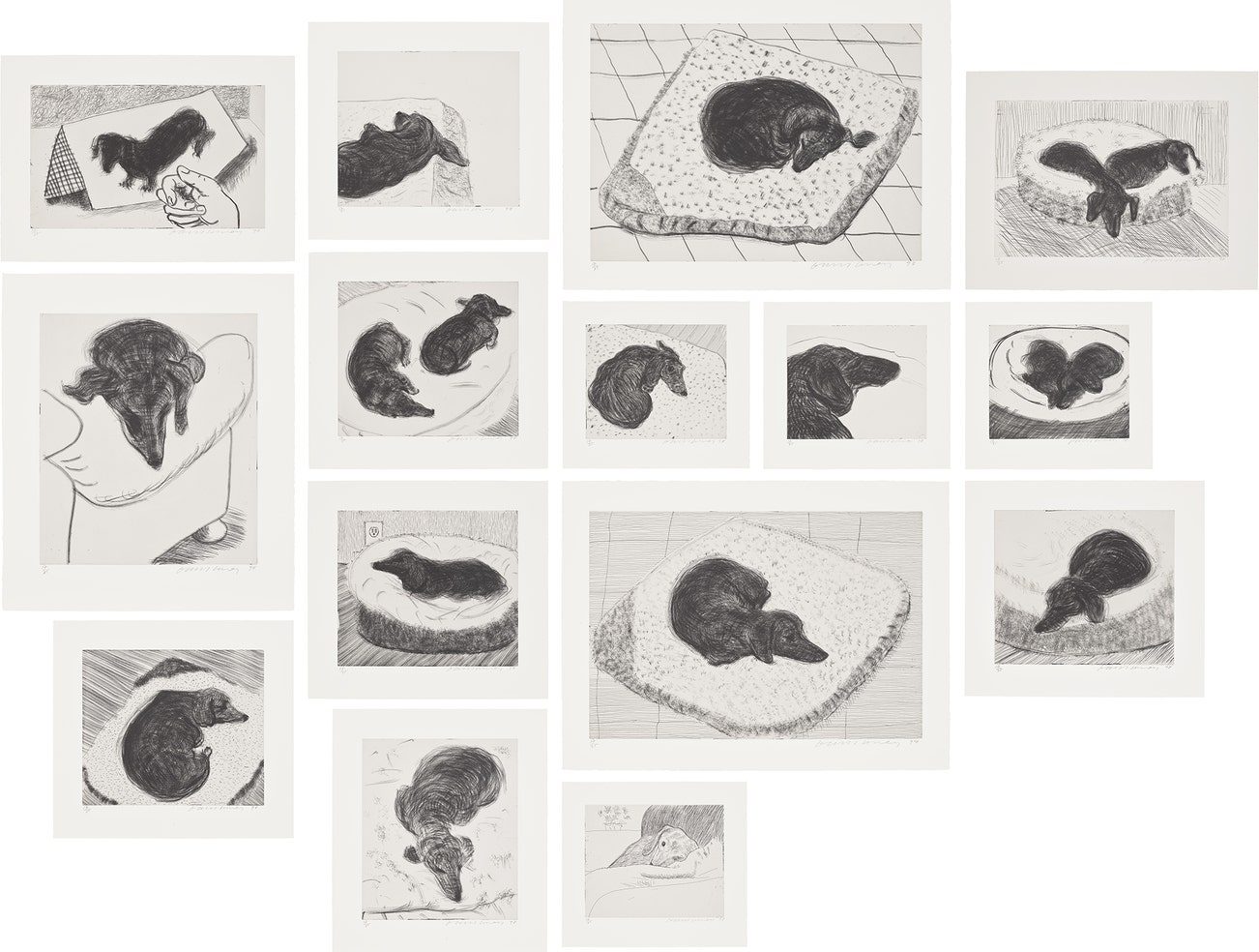 The complete set of 15 etchings, on Somerset paper, with full margins.