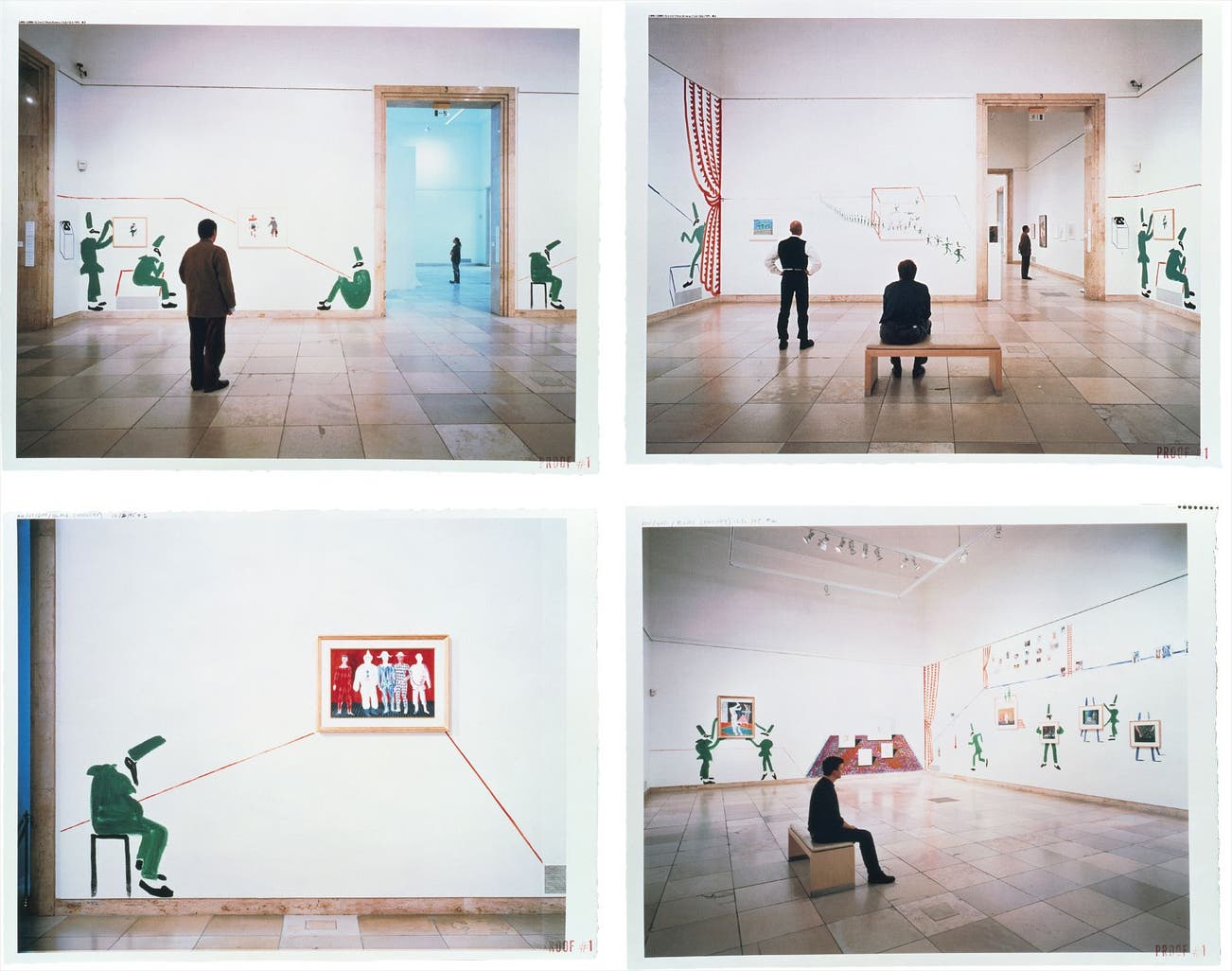 Four Works: (i) Two Walls with Corner; (ii) Melancholy Punchinello; (iii) Punchinellos with Helpers in Two Galleries; (iv) Looking at Punchinellos Entering a Room + Picture