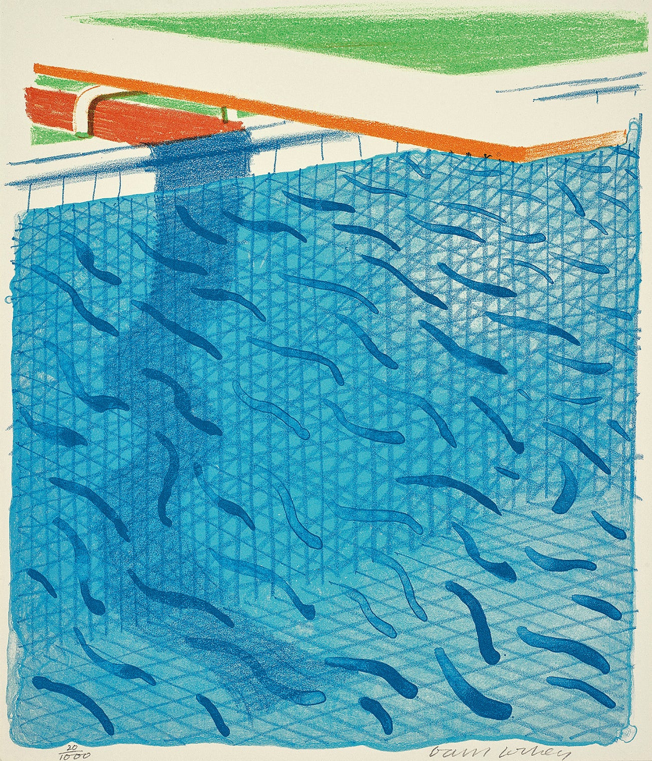 Lithograph in colours, on Arches Cover mould-made paper, the full sheet, with the accompanying book Paper Pools and its card slipcase.